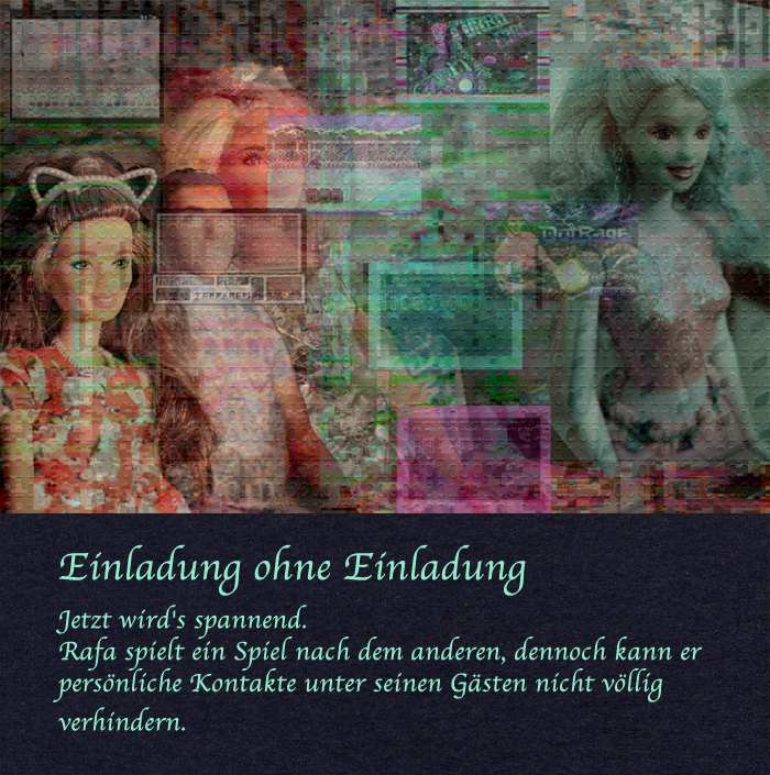 "Noch eines", sagte ich, kurz bevor ich aufbrach, "Rafa möchte ja jetzt am liebsten, daß ich die ganze Geschichte aus dem Netz nehme. Das werde ich natürlich nicht tun. Aber mein Wunsch ist es, daß ich das erste Kapitel wieder in den Originalzustand zurückversetze. Nun kannst du ja mal versuchen, von Rafa herauszukriegen, ob es nicht ohnehin einerlei für ihn ist - da er ohnehin will, daß ich die ganze Geschichte 'rausschmeiße -, ob ich nun die Originalfassung von dem ersten Kapitel oder die veränderte Form im Netz habe."