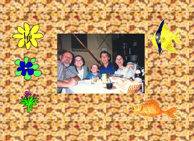 Schreiend dargebotene schwäbische Mundart mit Jugendfotos vor Blümchentapete. . .